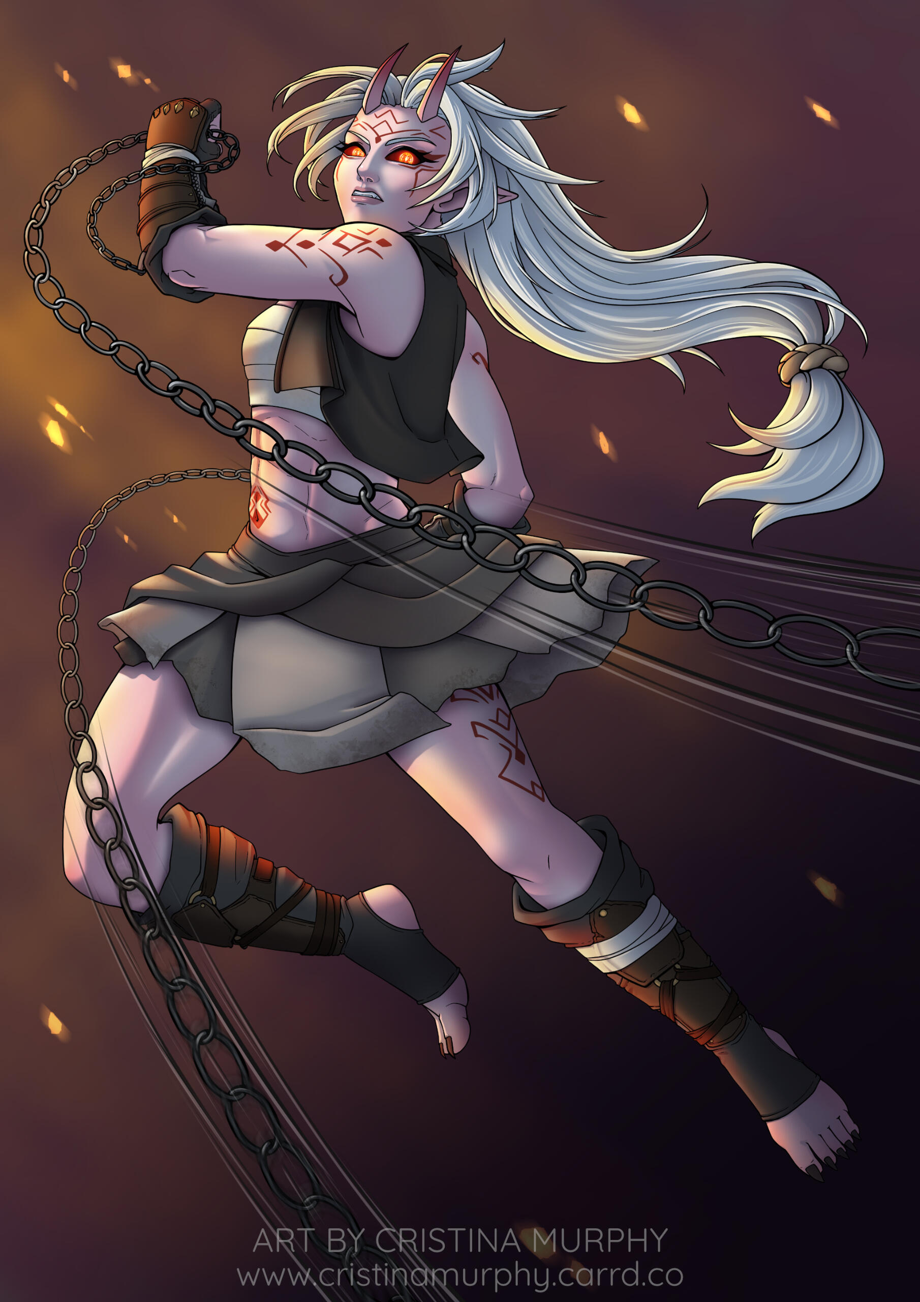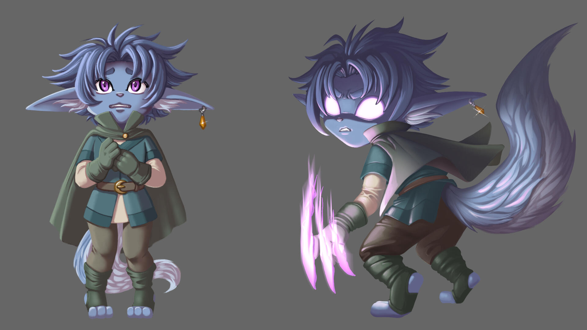 This was an interesting character design since we're starting at Tier 1, at the beginning of their journey as an adventurer. The outfit reflected their more humble beginnings and the pose was meant to show off their martial prowess, making them look powerful.
