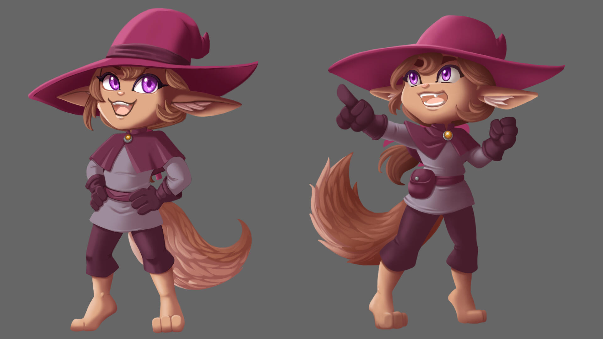 This was an interesting character design since we're starting at Tier 1, at the beginning of their journey as an adventurer. The outfit reflected their more humble beginnings and the pose was meant to show off their martial prowess, making them look powerful.