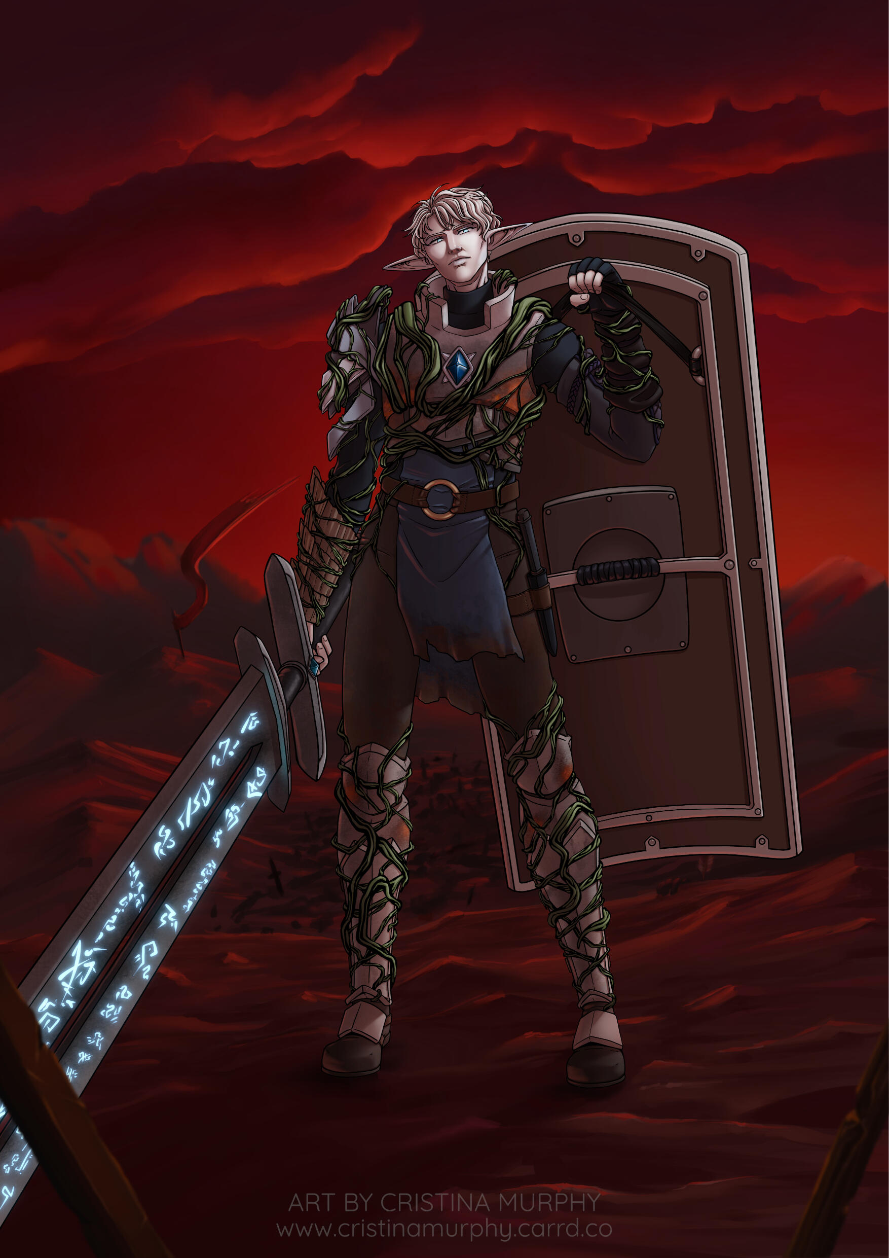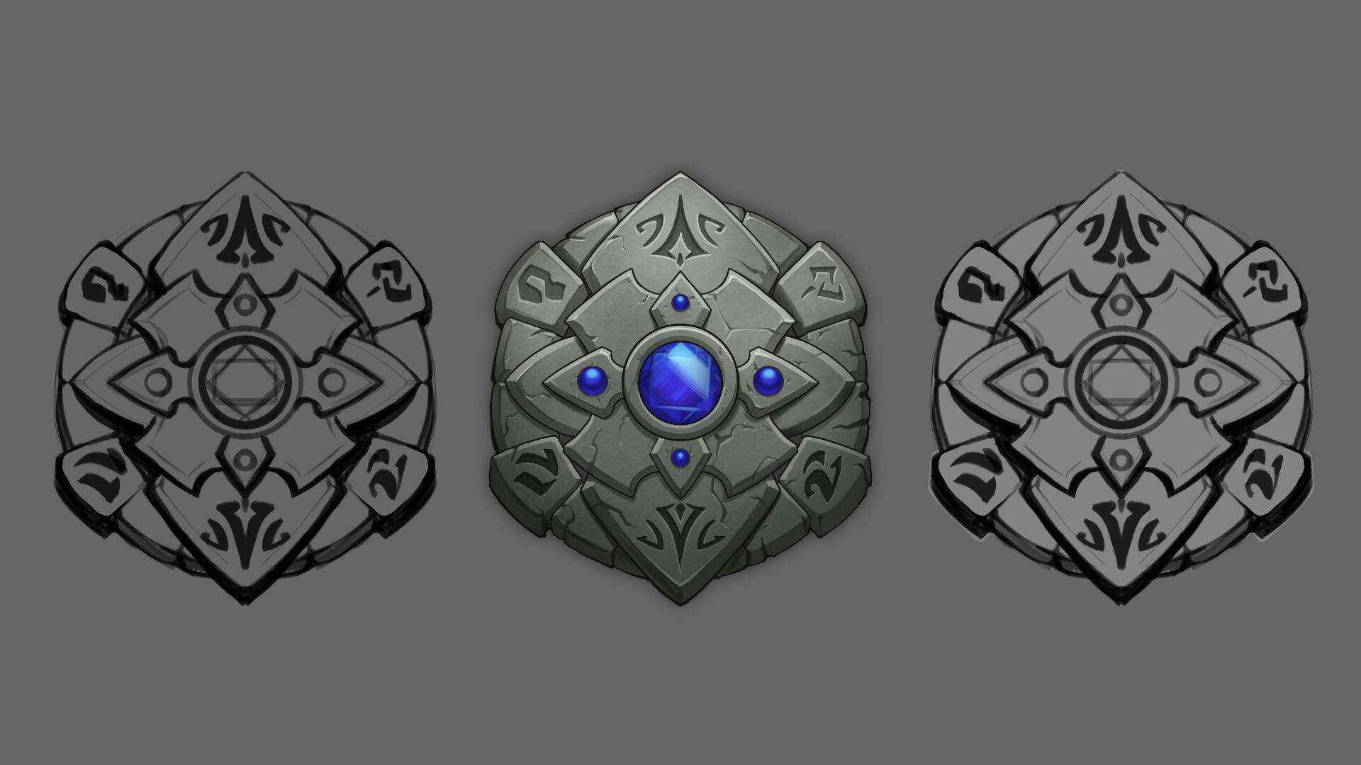 There were a lot of iterations at the initial design phase. The character has been through many battles back-to-back so I wanted to explore a few where he looked tired, dragging his gear, feeling the weight of it all. He's also confident in his abilities and strength, capable of wielding his large sword and shield even though his physique doesn't seem capable of it.